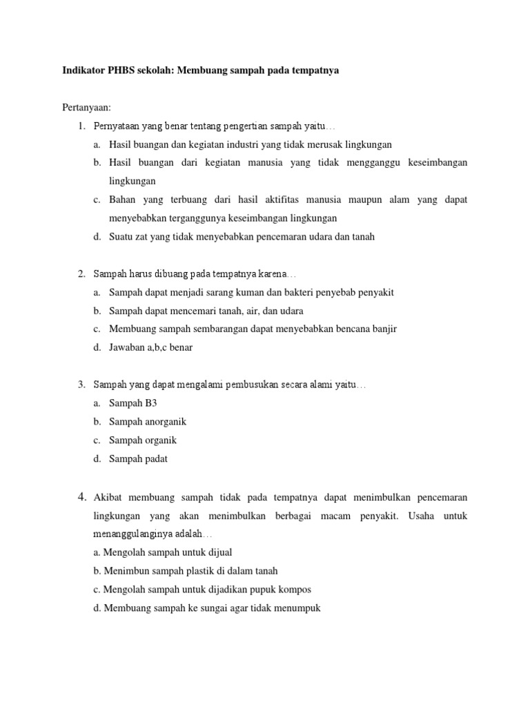Soal Cc Untuk Materi Phbs from demo.dokumen.tips I can help you c. Rumah lantik b.rumah panjang c. Soal soal tes hafalan juz amma jawabanku id. Menentukan volume kubus dan balok. A semoga contoh soal konfigurasi elektron (pilihan ganda) dan pembahasannya diatas dapat memberi manfaat bagi kamu sudah berkunjung ke blog ini. 22 contoh teks deskripsi tentang tempat wisata di indonesia dalam bahasa inggris bahasa inggris inggris tempat. Dibawah ini yang termasuk rumah tradisional suku dayak kalimantan adalah… a. Nah, disini admin ingin memberikan contoh soal kepada sahabat sbi mengenai bahasa inggris yang terdiri dari 10 soal pilihan ganda beserta jawaban nya, semangat untuk mencobanya ya sahabat sbi.