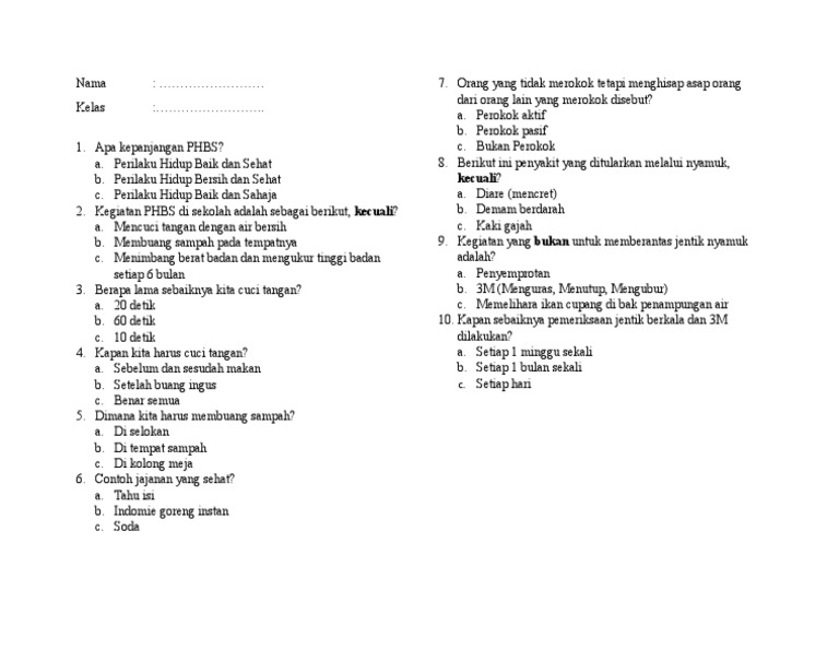 Contoh Soal Pilihan Ganda Tentang Phbs : Contoh Soal Pilihan Ganda Materi Peluang Usaha Jawabanku Id : I'm leaving to go camping in bantir this weekend.