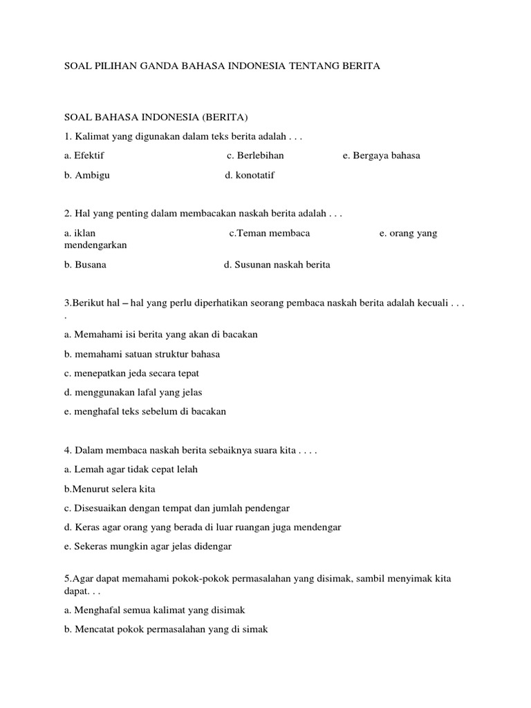 Contoh soal bahasa indonesia kelas 12 semester 1 dan jawabannya tulisan ini berbentuk pgpilihan ganda yang berisikan materi tentang telekomunikasi dan informasi seperti. Berikut ini adalah contoh soal pilihan ganda teks eksposisi kelas 12 beserta jawabannya. Penyampaian berita ini bisa dilakukan secara lisan yang sering kita dengar dan lihat di televisi, dan secara tulisan yang dapat kit abaca di media cetak. Contoh soal bahasa indonesia kelas 12 semester 1 dan jawabannya essay part 2. Contoh soal pilihan ganda mengenai kata kerja verb dan kunci jawaban.